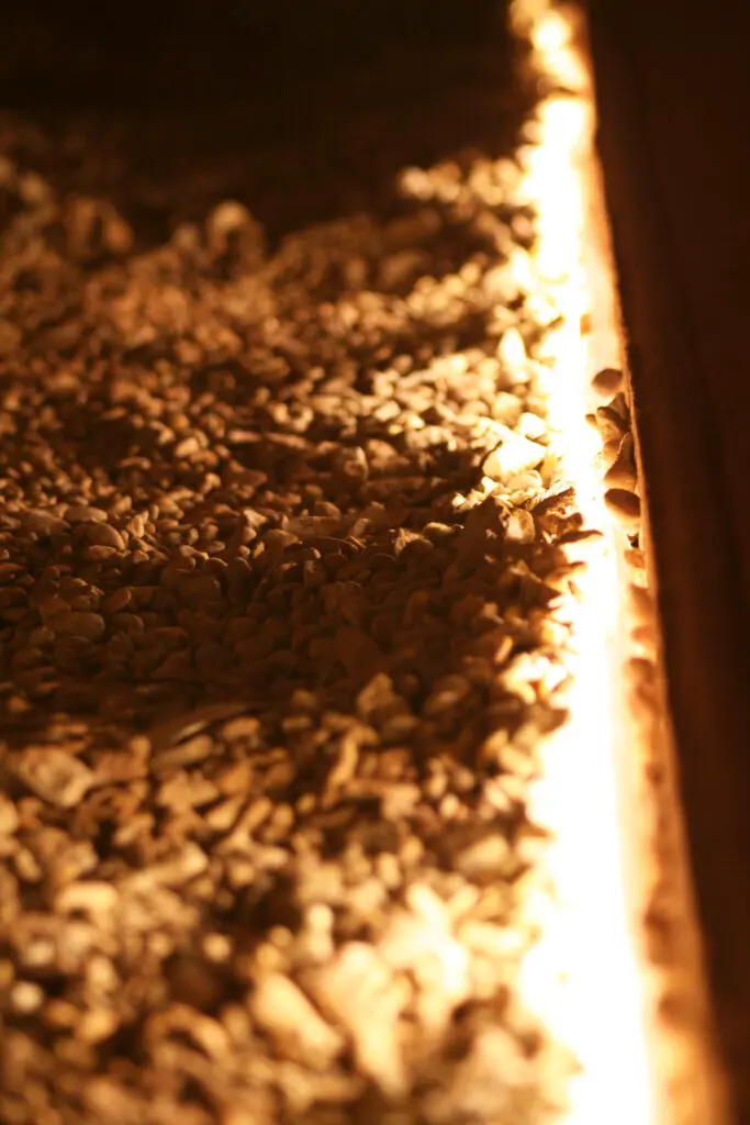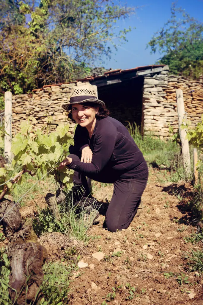 Het werk in de wijngaard gebeurt bijna volledig met de hand (onkruid wieden, snoeien, plukken). Voor haar 1° Cru wijngaarden ploegt ze zelfs met een paard om de bodem zo licht mogelijk te houden. In totaal heeft ze 6 verschillende Puligny-Montrachet village wijnen Die ze apart vinifieert om de eigenschappen van elk terroir te laten spreken. “Les Enseignères”, “Au Paupillot”, “Les Houlières”, “Derrière la Velle”, “Les Nosroyes” en “La Rue aux Vaches”. Daarnaast heeft ze ook twee 1° Cru wijngaarden, “Hameau de Blagny” en de beroemde “Les Folatières”. In de wijnkelder volgt ze de vinificatie van de verschillende vaten dagelijks op alsof het haar eigen pasgeboren kinderen zijn. De wijnen rijpen vervolgens gedurende 16 maanden in 228l Franse eikenhouten vaten van 2, 3 en 4 jaar oud. Elk jaar worden de oudste vaten vervangen door nieuwe vaten met een medium toast.