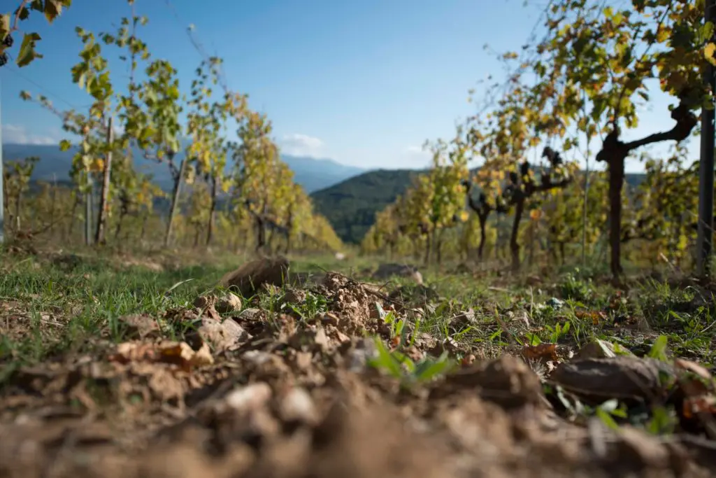De 54ha wijngaarden liggen op 400-450 meter hoogte. Hun beste wijngaard (15ha) is zuid-oost georiënteerd en bestaat uit Sangiovese (Brunello kloon) druivelaars van meer dan 40 jaar oud. De ondergrond bestaat uit klei is dan ook ideaal om water vast te houden tijdens de droge zomers. De toplaag is van zandsteen en zorgt voor een goede drainage. De hoge ligging en de koele winden afkomstig van de Monte Amiato zorgen voor een langzame rijping zodat de wijnen zeer aromatisch en elegant zijn van stijl. De wijngaarden worden reeds jaren volledig biologisch bewerkt.